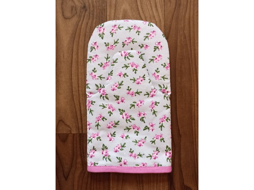 Chňapka ze 100% bavlny s termolínem (75% PES, 17% PE, 8% Al), opatřená magnetem a poutkem na zavěšení.